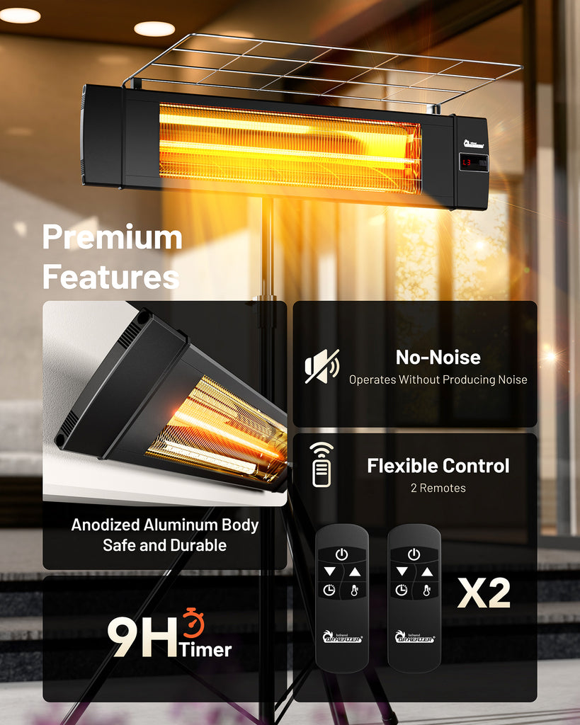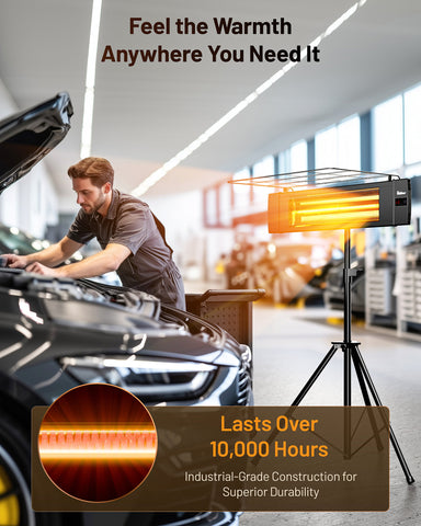 - ✔ Flexible Installation: Features an adjustable aluminum tripod for portable heating and wall-mount hardware for a permanent setup