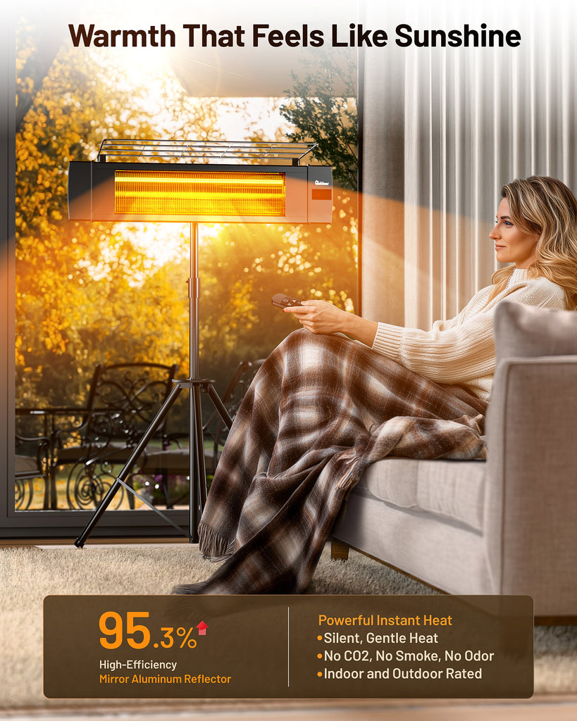 - ✔ Instant Infrared Warmth: Provides clean, odorless heat that warms people and objects directly for fast, comfortable heating